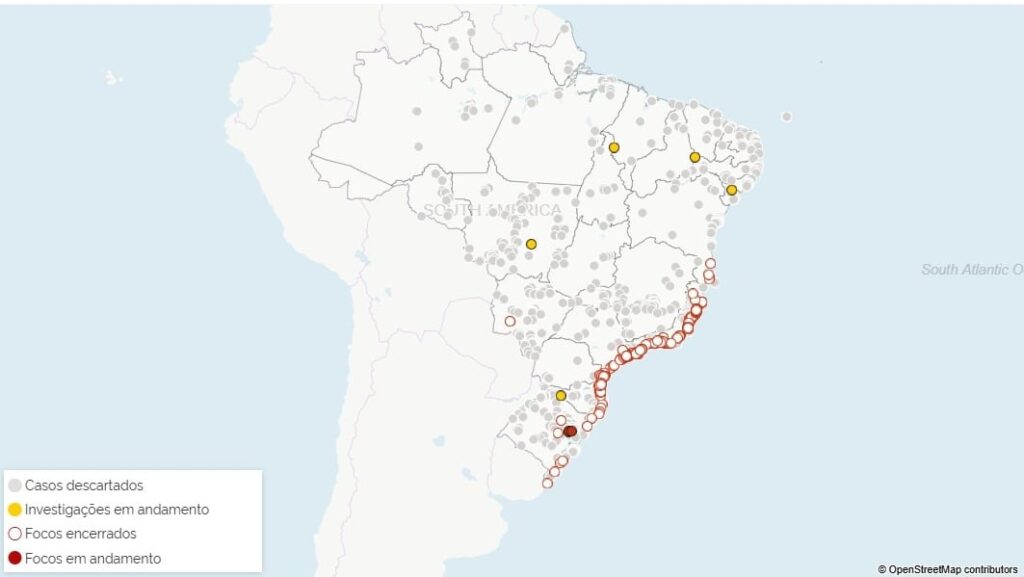 Mapa investiga casos de gripe aviária em cinco estados