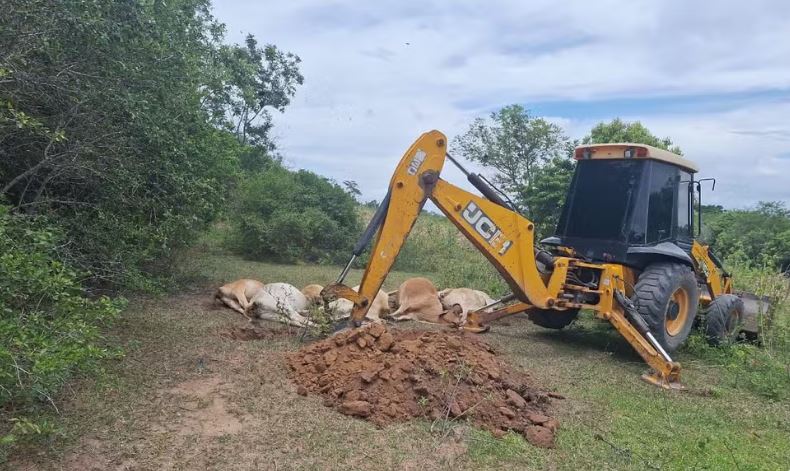 Foto: Defesa Civil RJ Dez cabeças de gado foram mortas após um raio atingir uma propriedade em São Francisco de Itabapoana, município da região Norte do Rio de Janeiro na madrugada da última terça-feira (3). A informação foi confirmada em vistoria da Defesa Civil do estado após vistoria na fazenda. Os agentes do órgão orientaram a abertura de uma vala para o enterro dos animais. Entre os animais da pequena propriedade, apenas um bezerro sobreviveu e, felizmente, nenhuma pessoa foi atingida. Confira na palma da mão informações quentes sobre agricultura, pecuária, economia e previsão do tempo: siga o Canal Rural no WhatsApp! Uma vala foi aberta na propriedade para enterrar os animais. Apenas um bezerro sobreviveu. Nenhuma pessoa se feriu na ocorrência. A Defesa Civil orienta sobre a necessidade de instalação de para-raios, visto que, na ausência do equipamento, a descarga pode ocorrer sobre árvores isoladas, áreas descampadas, postes e cerca, entre outros locais presentes, principalmente, em áreas rurais. Na ocorrência de chuva forte ou anúncio de tempestades, o órgão alerta que não se deve ficar debaixo de árvores ou em campo aberto, muito menos próximo a estruturas metálicas. O post Raio provoca a morte de 10 cabeças de gado no Rio de Janeiro apareceu primeiro em Canal Rural.